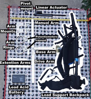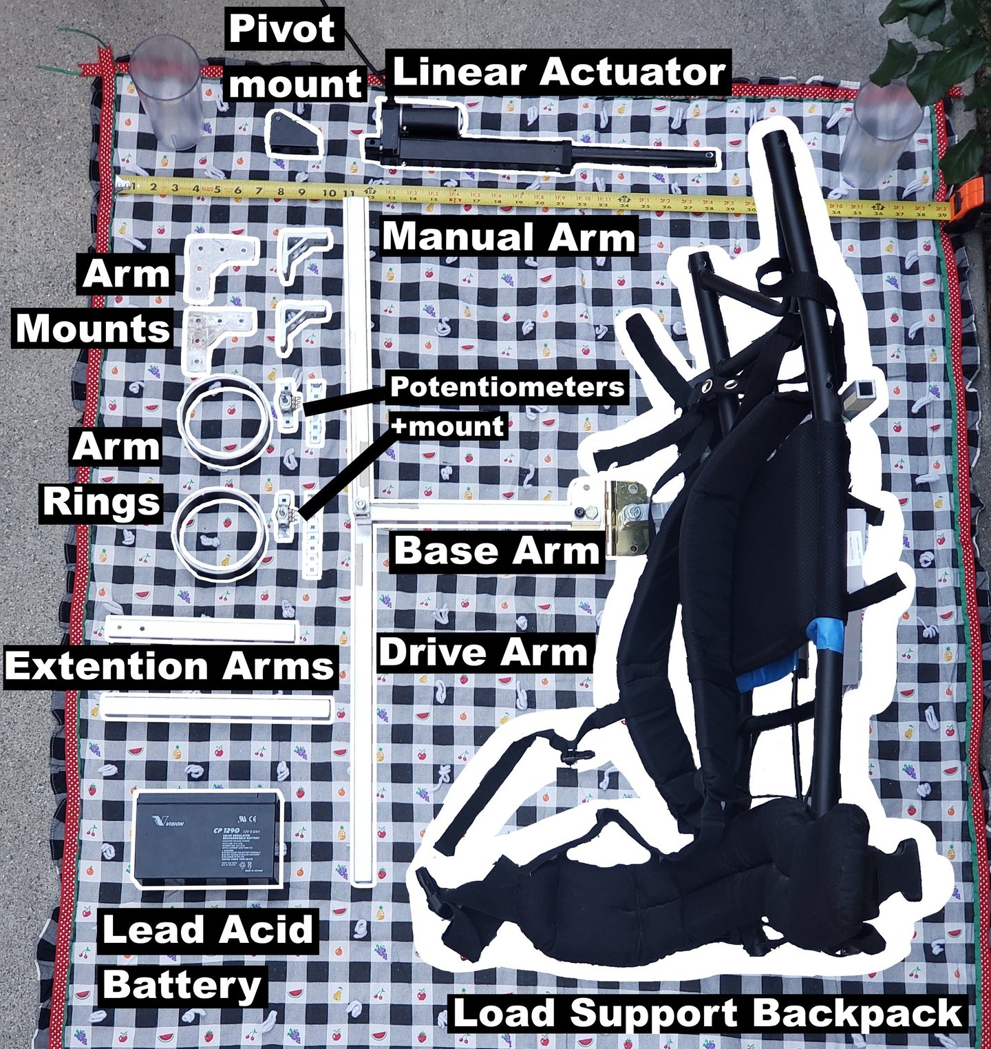 In the video, you will notice that we mounted the arm to the frame of a hiking backpack. This is how the user wears the exo-arm and this frame acts as a support for the arm as it distributes the weight of the load.