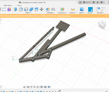 We ended up 3D modeling the arm to get a better sense of how the different parts would move. We added two more metal bars to extend the range of the linear actuator and better support the drive arm