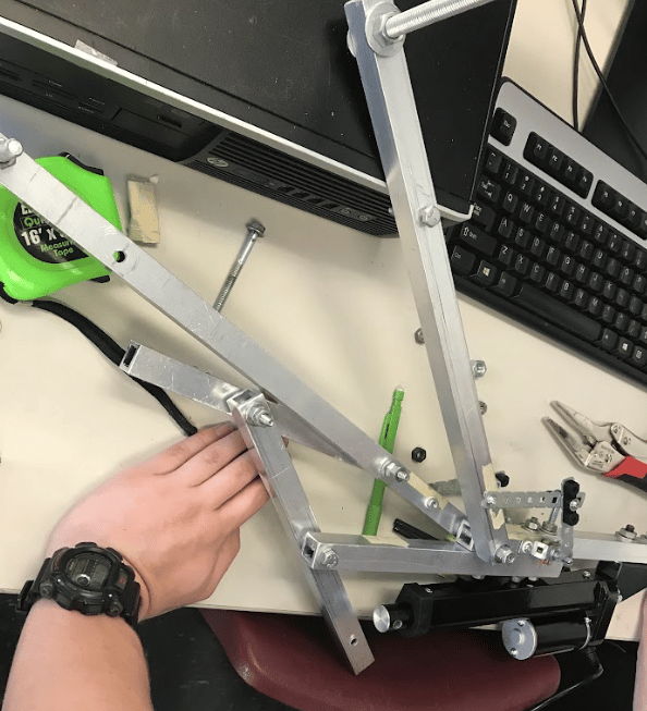 Next we had to figure out where to put the linear actuator to achieve the angle bends we want