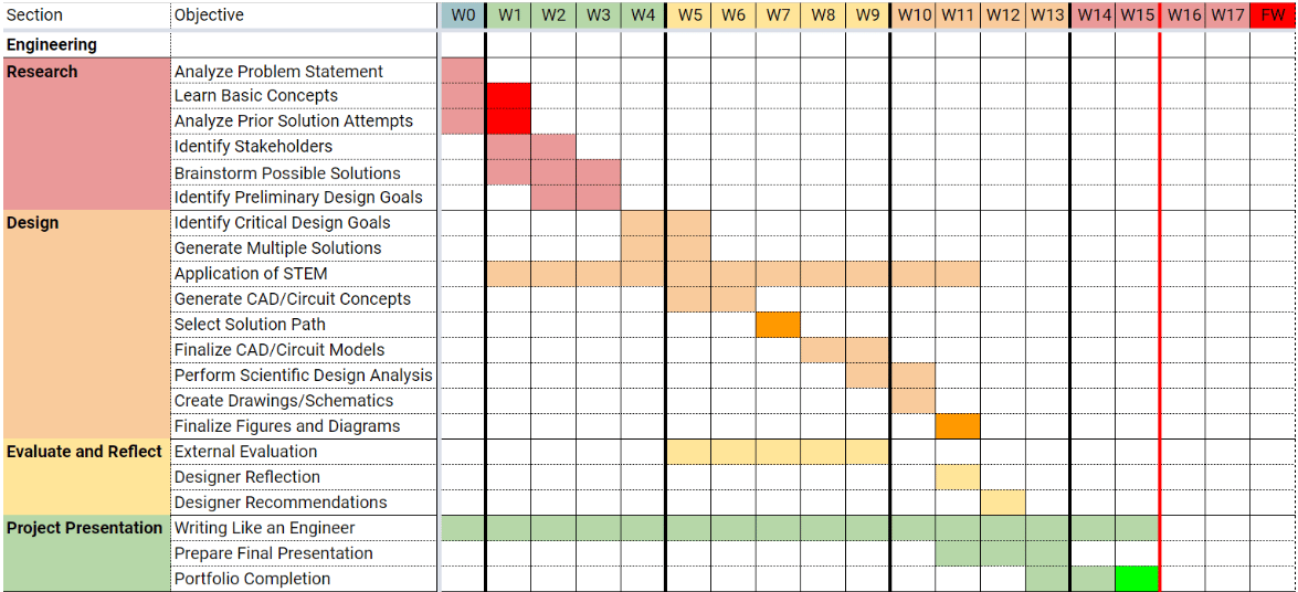 Below is the Gantt Chart our team came up with to plan the engineering side to the project