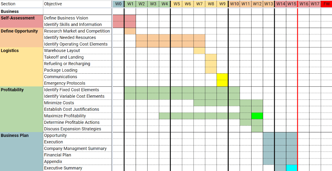 Below is the Gantt Chart our team came up with to plan the business side to the project
