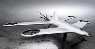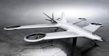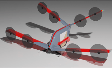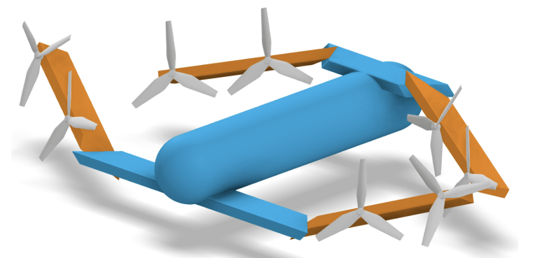 We decided to choose a Transwing design, with wings that would rotate at 45 degree angles to transition between a VTOL and a fixed-wing design.