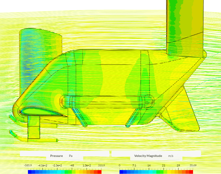 We conducted an aerodynamics simulation and adjusted the angle of attack of the airfoils to get the right lift-to-drag ratio. We did this with both the loaded and empty configuration to ensure the drone would fly properly when heading to the delivery site as well as the returning to the warehouse. The UAV mass was calculated to be about 25kg full, so the minimum lift force required for flight is 245N. I'll spare you details of the lift and drag calculations but if you are curious I have linked the full submission description of this post above.