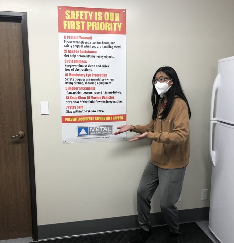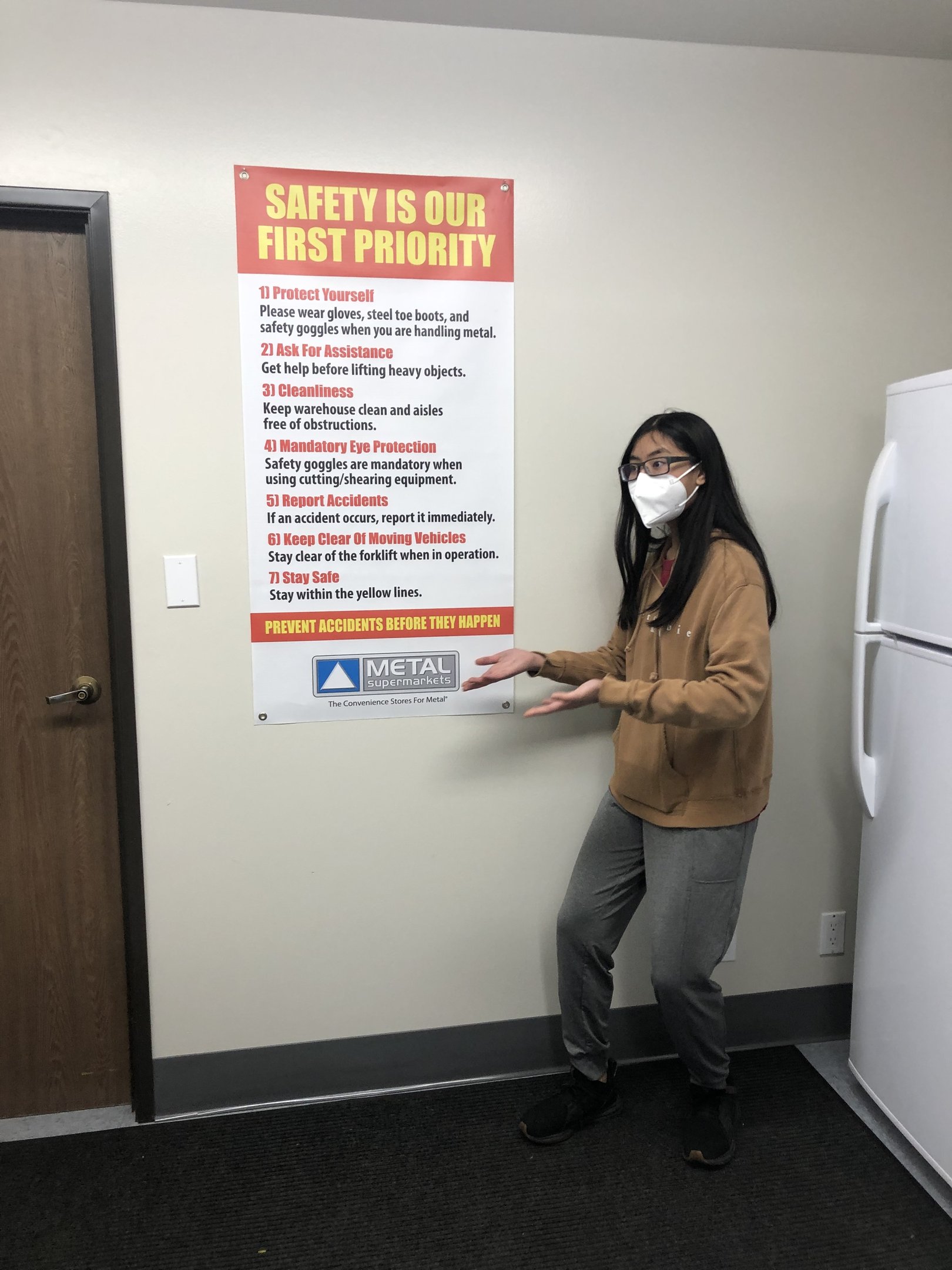 Aleqxus with a safety remainder at the metal supermarket