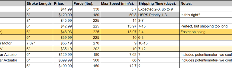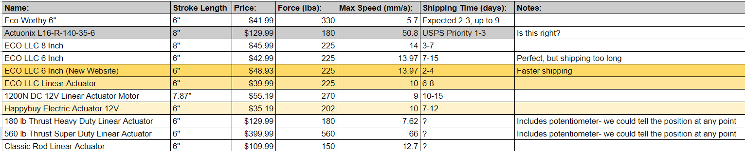 Below are some of the linear actuators we considered