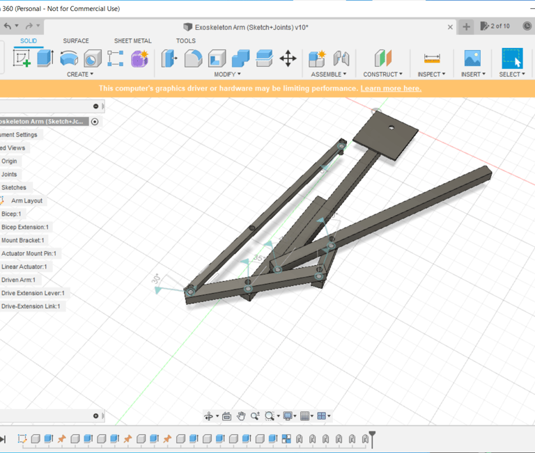 Below is a video of the bare skeleton of the exo-arm without the linear actuator, because at this point of the build process, it hadn't arrived yet.